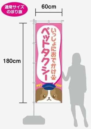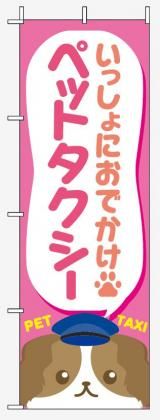 ペットタクシー実施業種に使用出来る「いっしょにおでかけ・ペットタクシー」のぼり旗です。