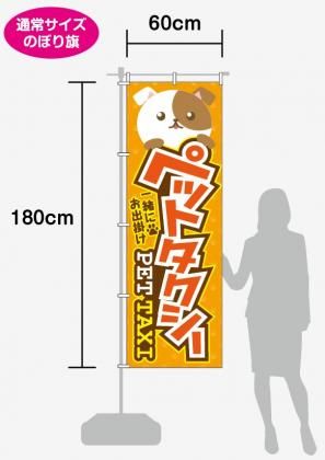 ペットタクシー実施業種に使用出来る「ペットタクシー(PET TAXI・一緒にお出掛け)」のぼり旗です。