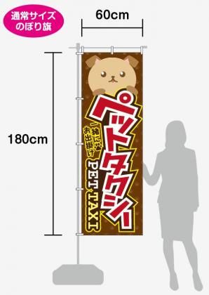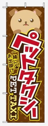ペットタクシー実施業種に使用出来る「ペットタクシー(PET TAXI・一緒にお出掛け)」のぼり旗です。