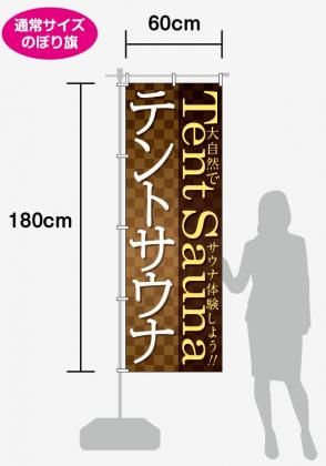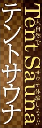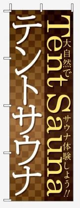 キャンプ場やテントサウナお取り扱い施設などで使用出来る「テントサウナ(tent sauna)大自然でサウナ体験しよう」のぼり旗です。